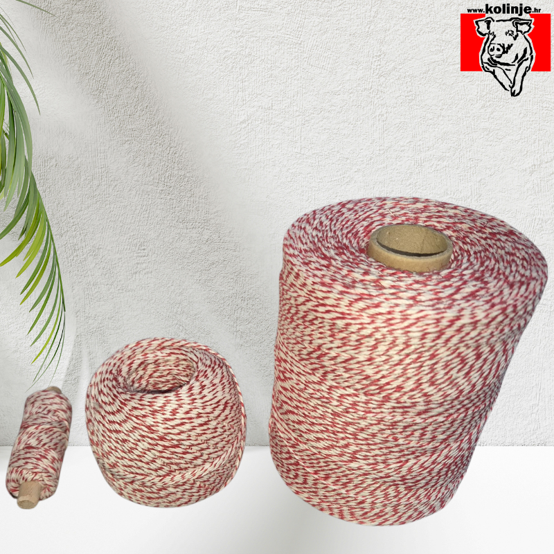 Tražite špagu koja će unaprijediti vašu izradu suhomesnatih proizvoda? Naša špaga crveno bijela kudeljna je savršen izbor za sve vaše potrebe vezanja. Ova špaga, dostupna u različitim pakiranjima, omogućuje brzo i jednostavno vezivanje kobasica, salama i drugih suhomesnatih specijaliteta.